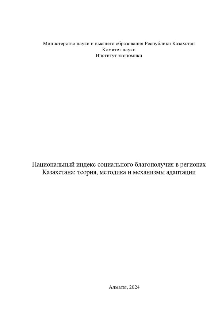Национальный индекс социального благополучия в регионах Казахстана: теория, методика и механизмы адаптации